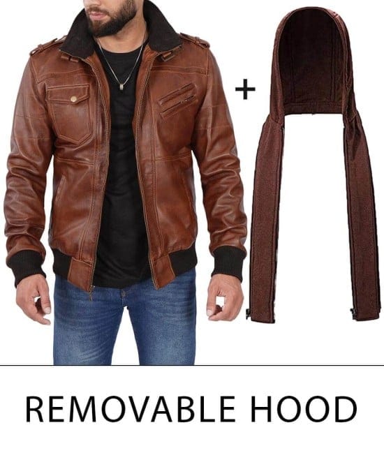 The Men’s Brown Lambskin Leather jacket offers a brisk and effortless style with an added benefit of a removable hood.