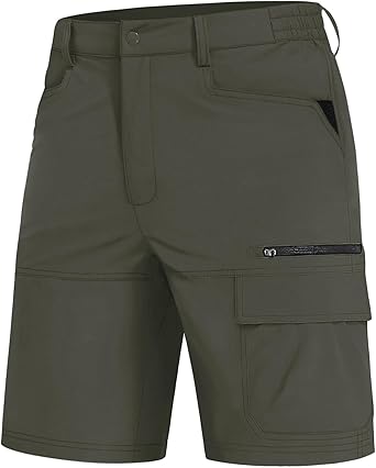 - Multi Pockets: 2 Slanted hand pockets, 1 zipper thigh pocket, 1 cargo pocket, 1 zipper rear pocket Elastic Waist: Elastic waist make you fit this shorts better